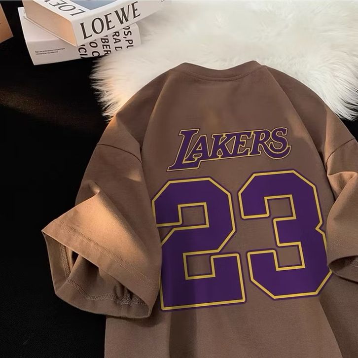 Washed Tshirt Lengan Pendek Kaos Oversize Motif Lakers 23 Korean Style Bahan 100 Cotton