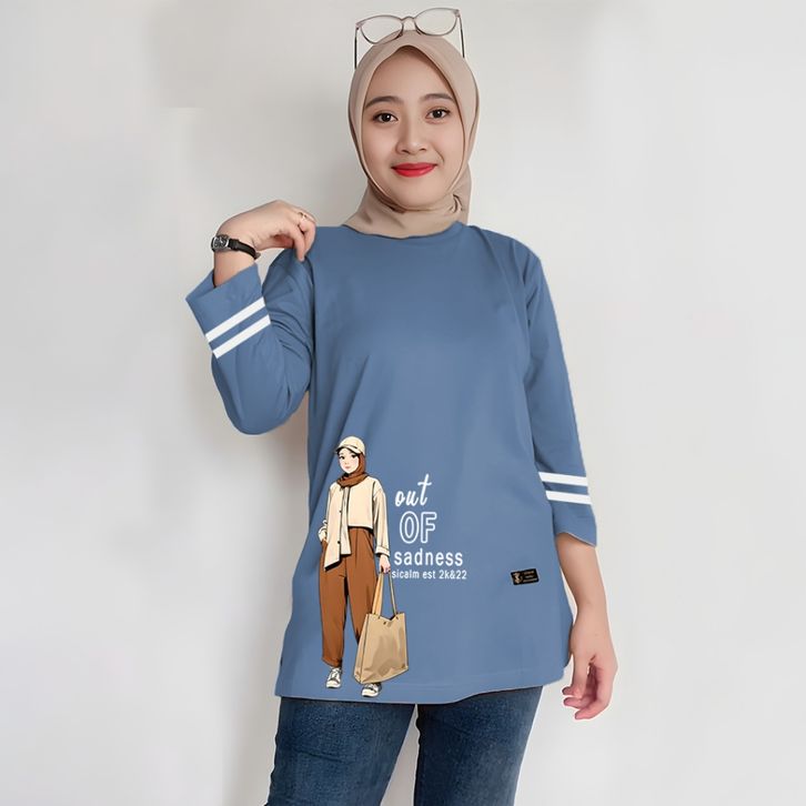 kaos oversize wanita lengan panjang stripes stripe shirt wanita premium tebal katun combed 24s