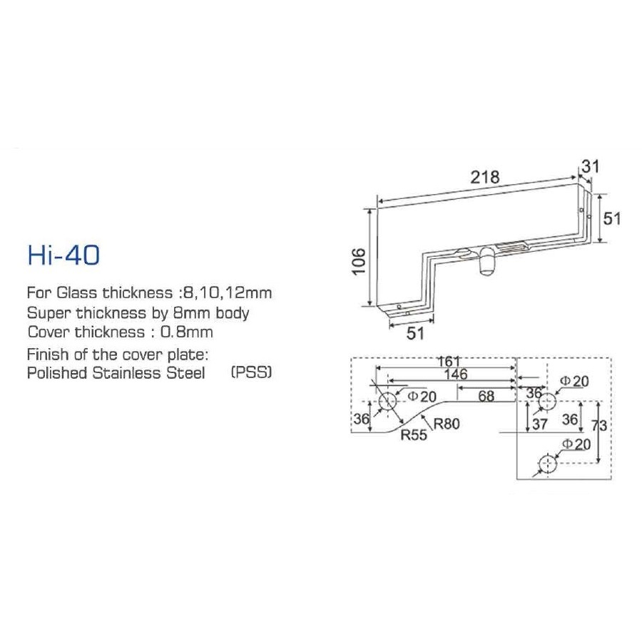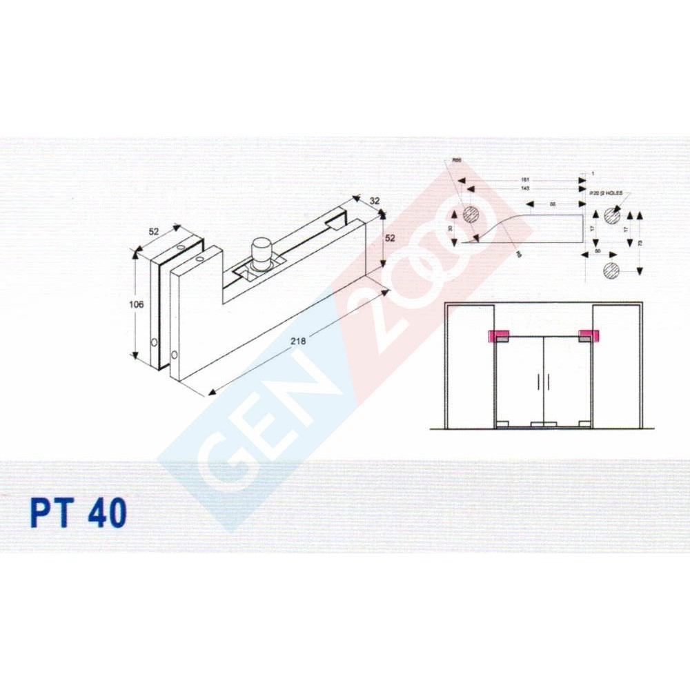 Patch Fitting PT 40 Top Fitting Pintu Kaca PT40 Penjepit dan Penopang Pintu Kaca
