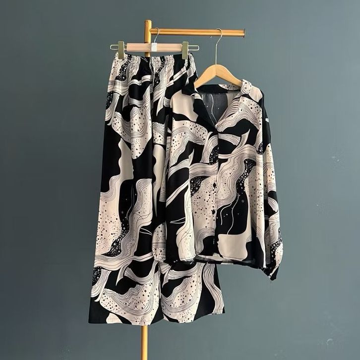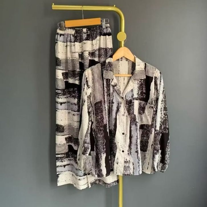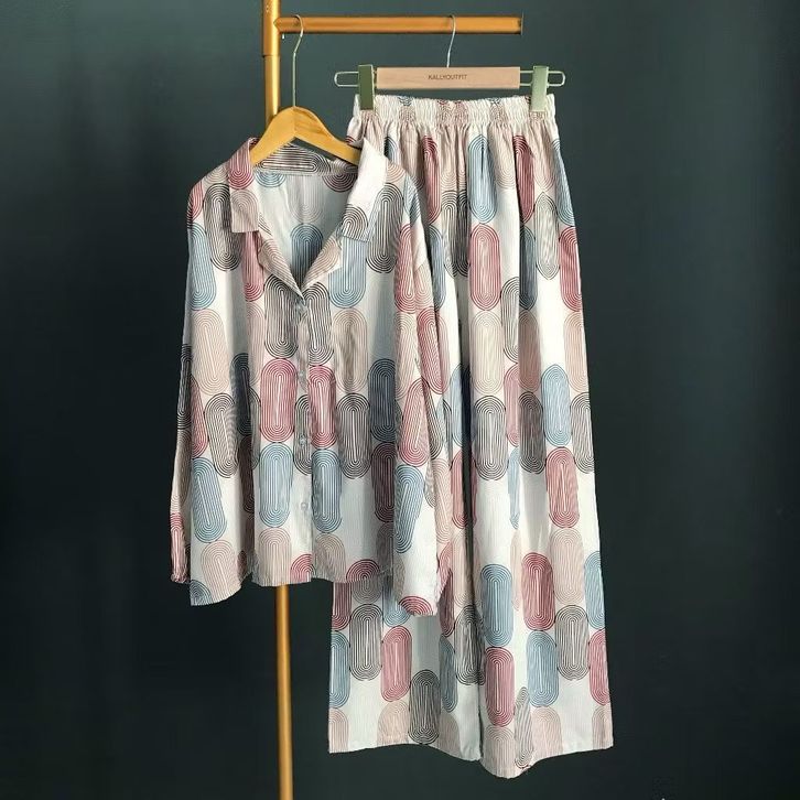 One Set Kekinian Kemeja Rayon Motif Kekinian dan Celana Kulot Hommy Bisa