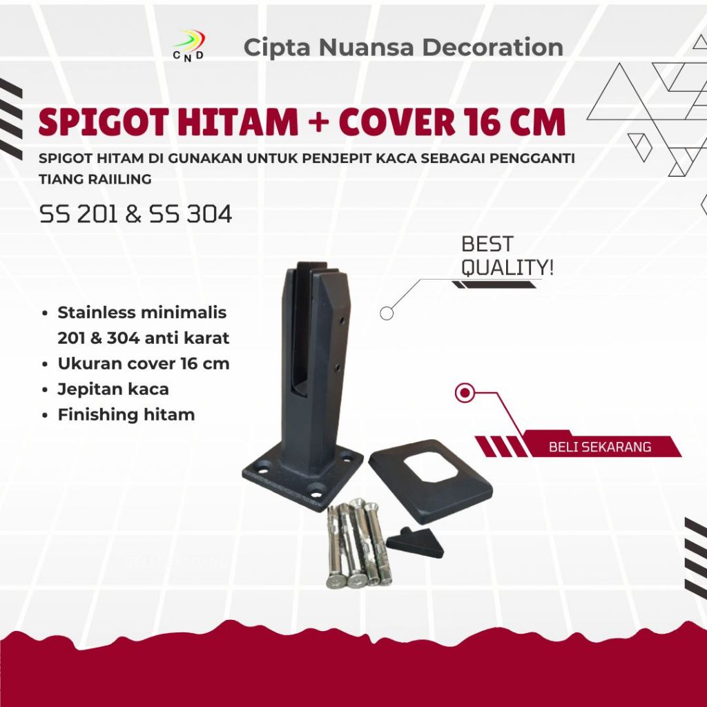 SPIGOT PENJEPIT KACA HITAM DOFF TINGGI 16 CM & 22 CM STAINLESS 201 & 304