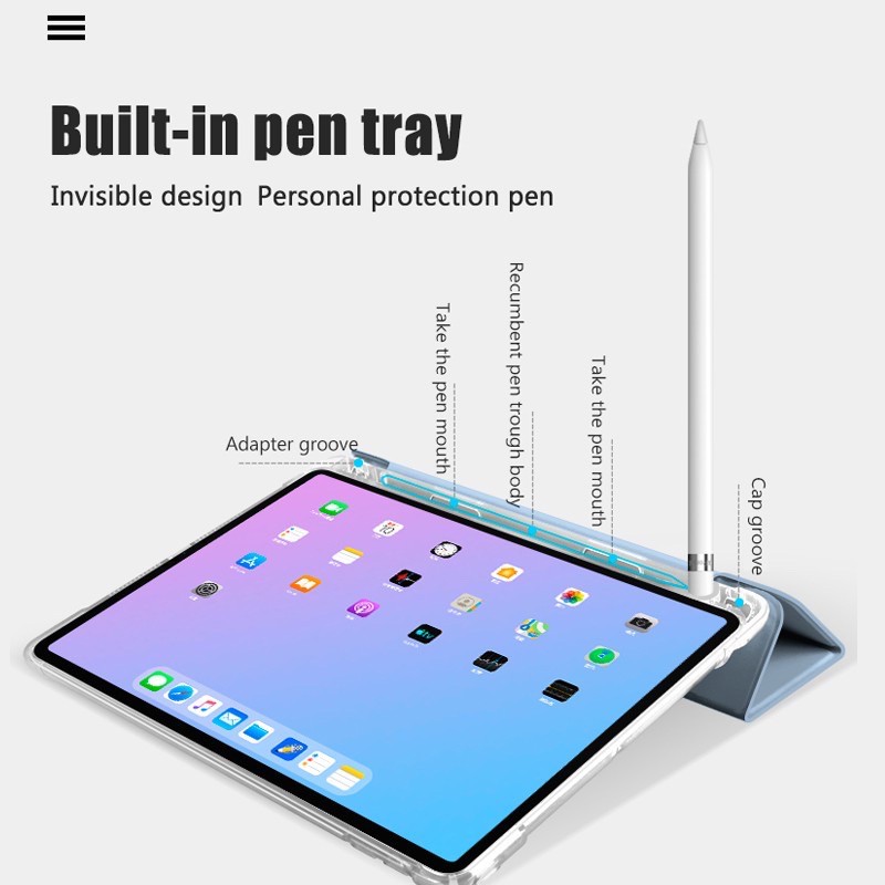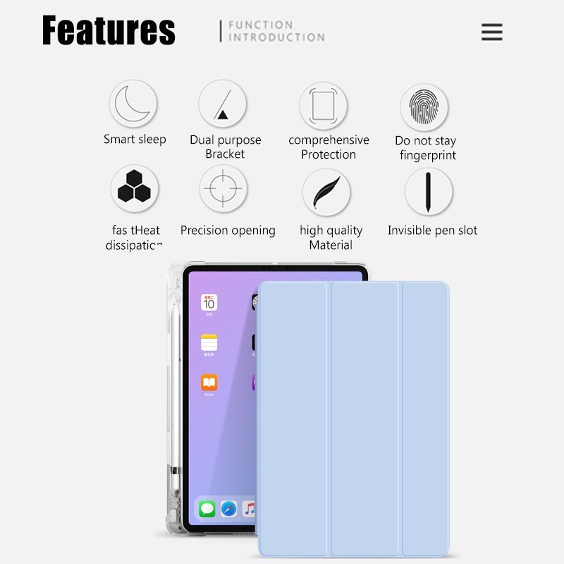 MILS Technologies Neoprene Transparent Trifold Clear Case for iPad 5 6 7 8 9 10 10.2 10.5 10.9 Air 3 4 5 Pro 11 12.9 13 2018 2020 2021 2022 2024 M1 M2 M4