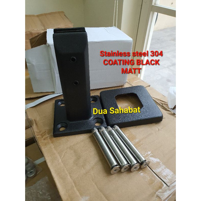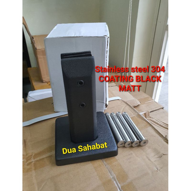 Spigot kaca jepit hitam black tiang railing braket kaki jepit stainless steel 304