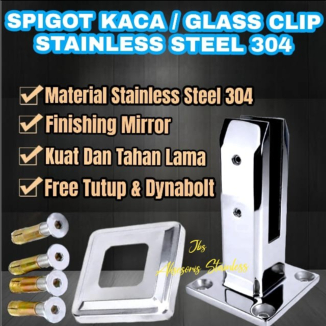 SPIGOT KACA/GLASS CLIP / BRACKET PENJEPIT KACA STAINLESS SUS 304
