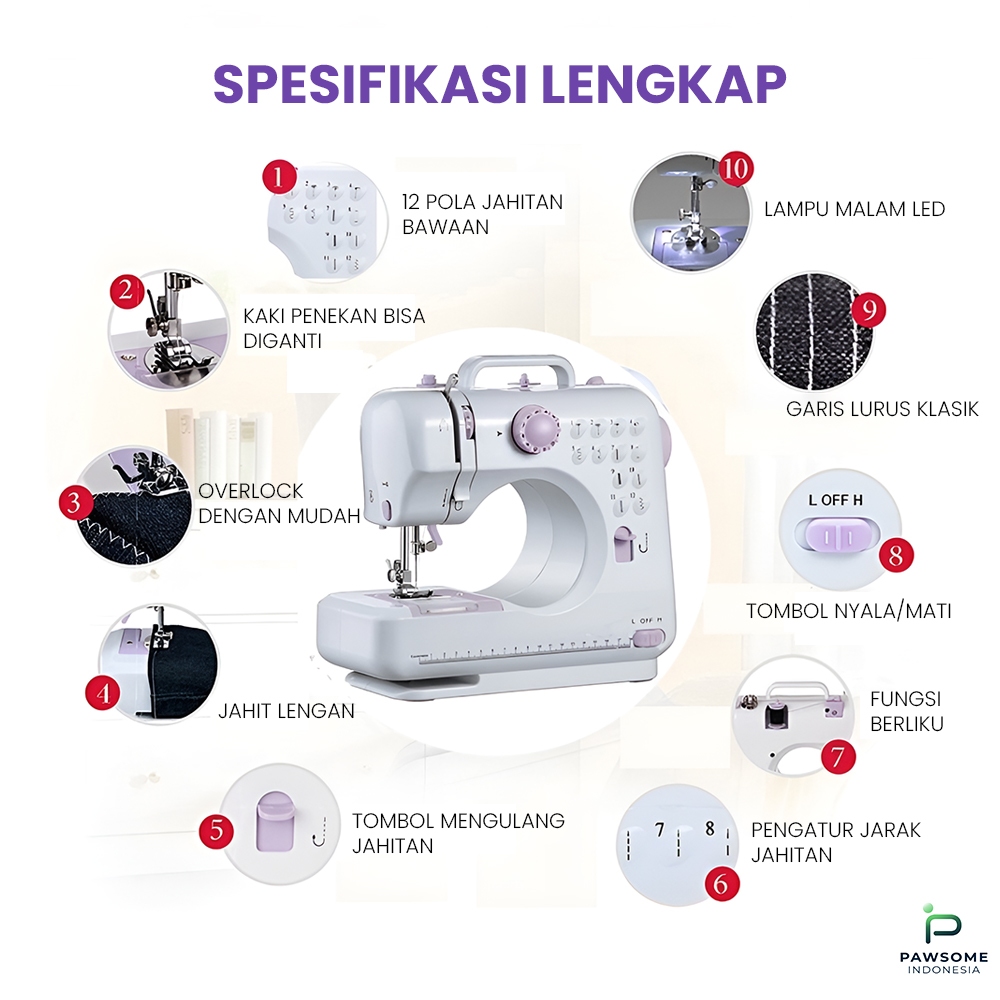 Mesin Jahit 505A Dengan 12 Pola Jahitan Pakaian Dengan Listrik/Baterai