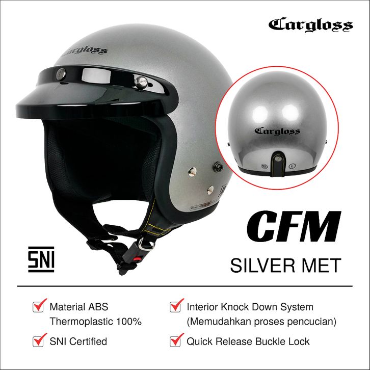 Helm Cargloss Cfm Retro Helm Half Face Silver Met Glossy Terlaris Original Official Store