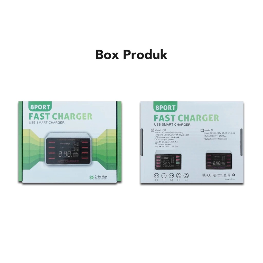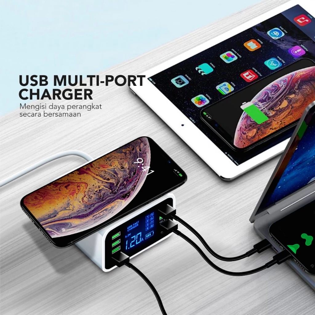 Port Charger AMINO 8 USB Port Multi QC 3.0/PD Fast Charger LED Function 40W [GRATIS ONGKIR]