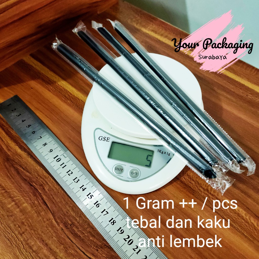 SEDOTAN BUBBLE BOBA THAI TEA CAPCIN 8MM 21CM PLASTIK HITAM RUNCING STERIL ISI 500 PCS