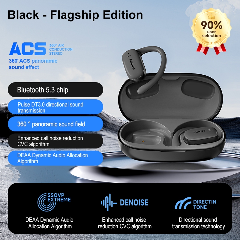 PHILIPS OWS Open Ear True Wireless Earbuds Audio Hi-Dynamic Bluetooth 5.3 with Noise Reduction SPORT Earphones Waterproo