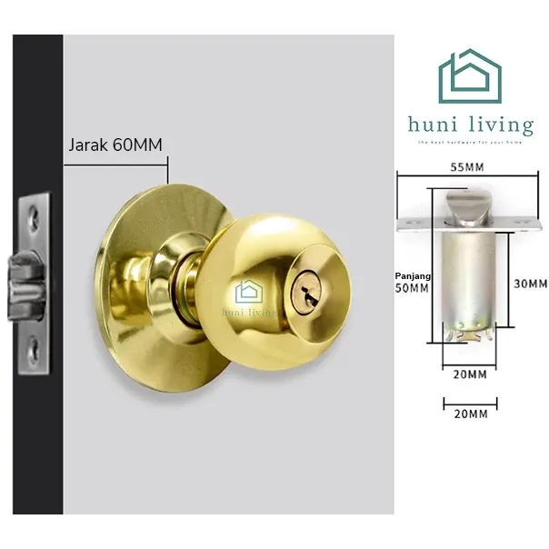 Kunci Pintu Kamar Mandi Bulat Onat / Tarikan Gagang Handle Putar Stainless 60mm