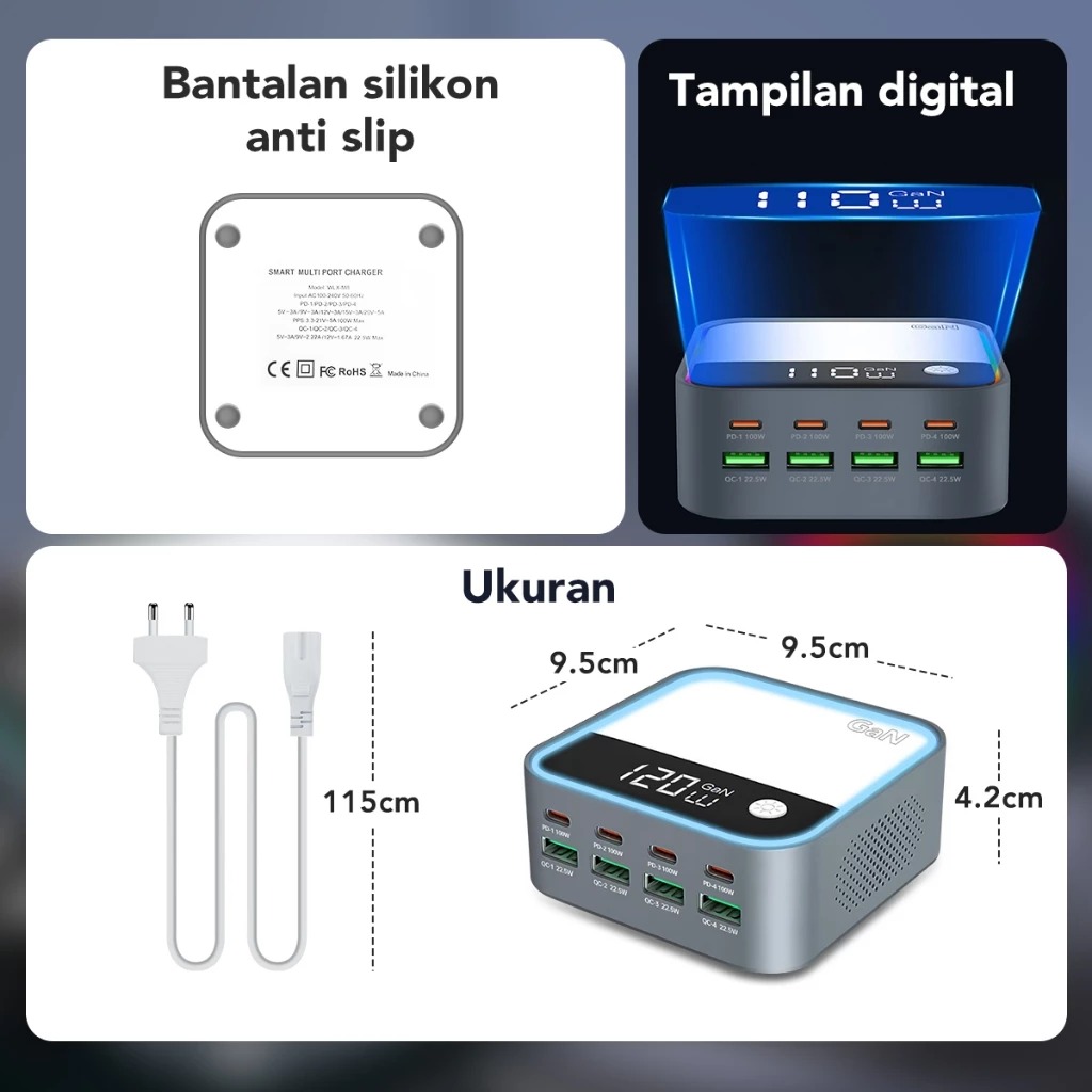 USB Port Charger AMINO 120W GaN Station Super Fast Charger Adaptor HP Laptop 8 USB C Port Desktop Multi-Ports PD QC