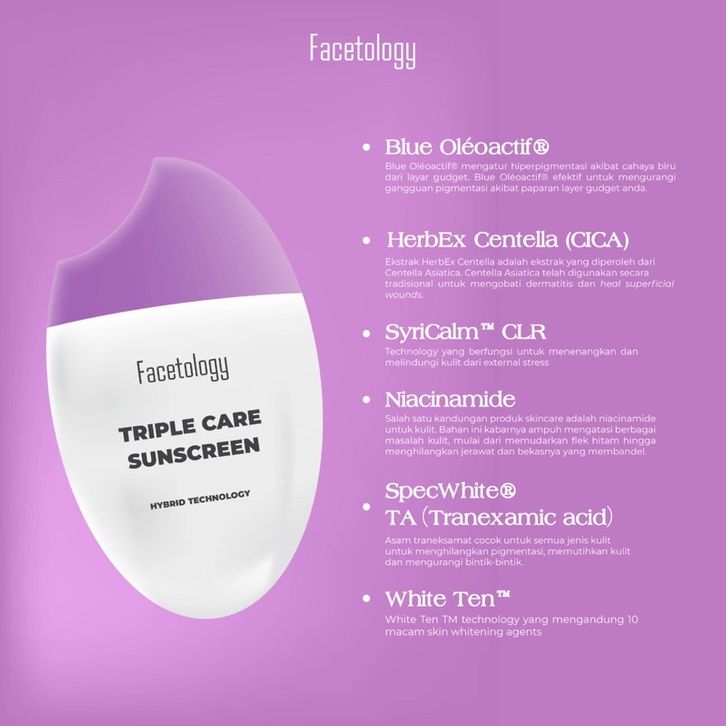 FACETOLOGY TRIPLE SUNSCREEN SPF 40 KRIM PENCERAH WAJAH / FACIAL WASH / micellar / lip protector