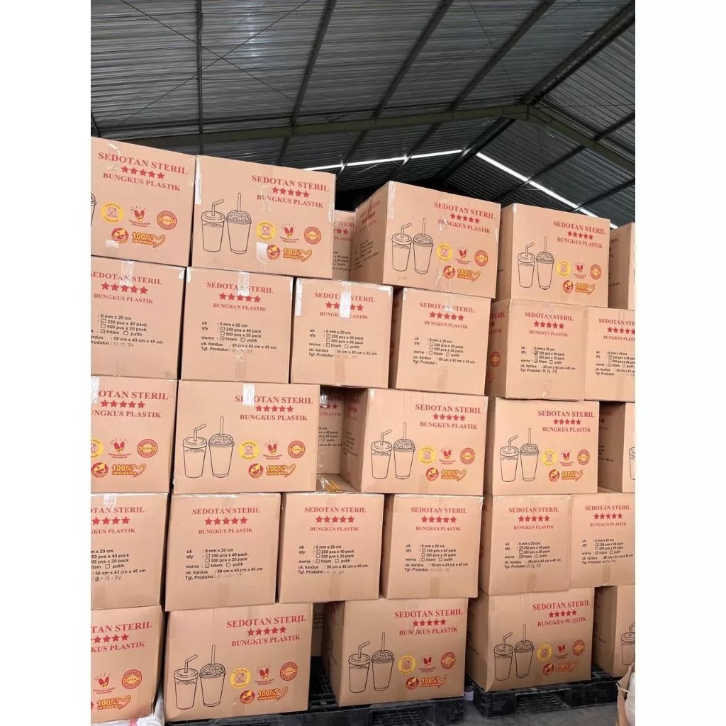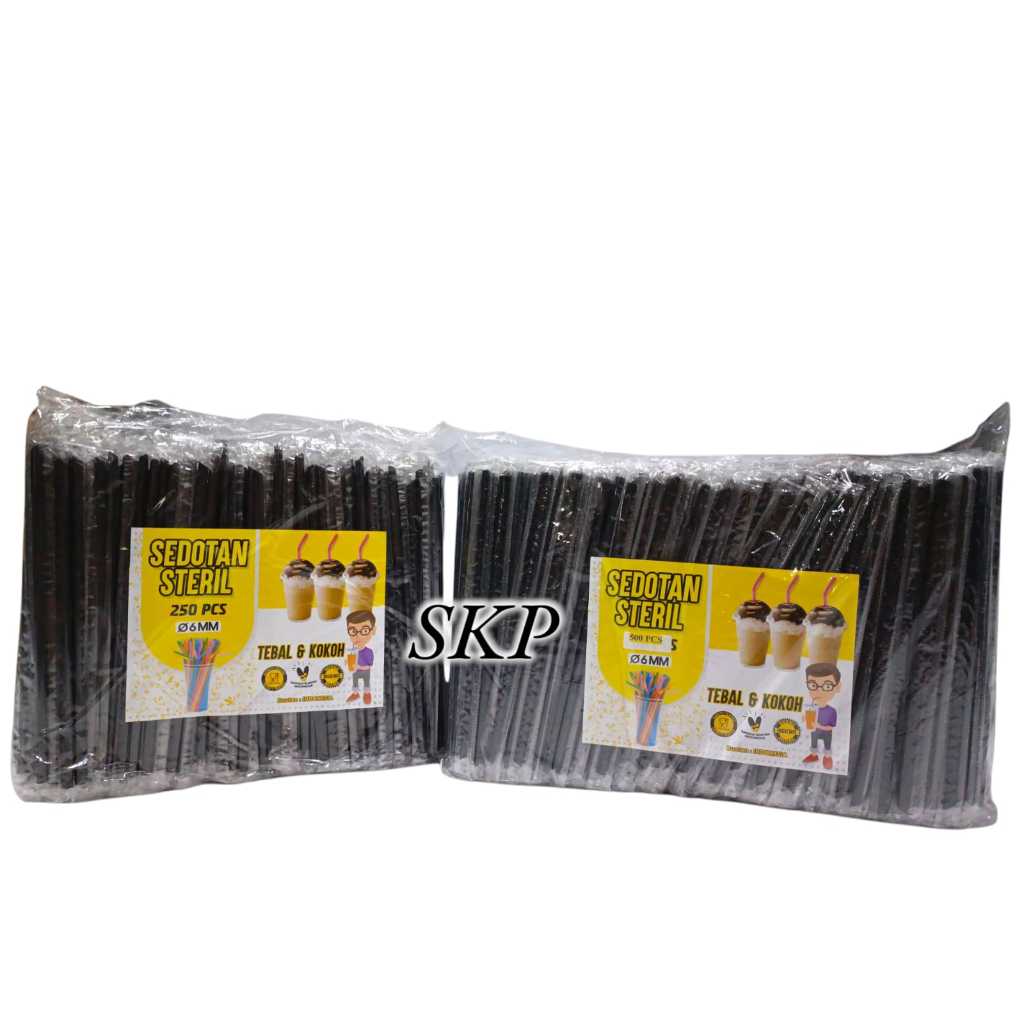 1 Karton Sedotan Plastik Steril Higienis 6mmx20cm Hitam Ujung Lancip Runcing / Sedotan Teh Solo