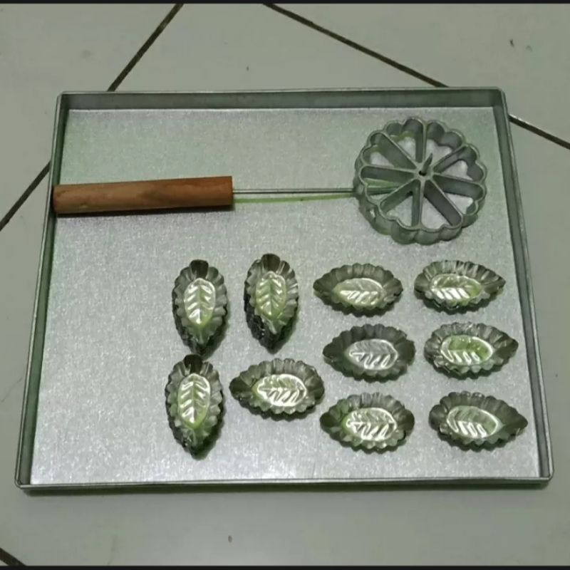 1 pcs loyang kue kering 100 pcs cetakan nastar daun dan cetakan kue kembang goyang