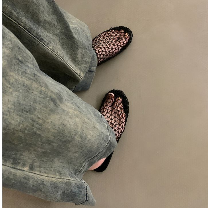 Flat Shoes Wanita Sepatu Jaring Balet Net Hitam Kekinian Import Korean Style Comfy Lembut Fashion Terbaru Casual Outfit