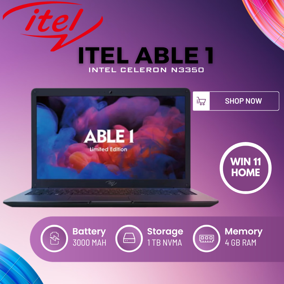 LAPTOP Murah itel Able1 Celeron N4120 8GB RAM + 256SSD 14 inch Windows 11 Pro WIFI/Bluetooth