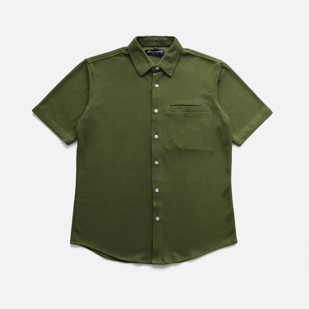 kemeja pria lengan pendek Cottongo Kemeja Pique Pendek Thermal Brown