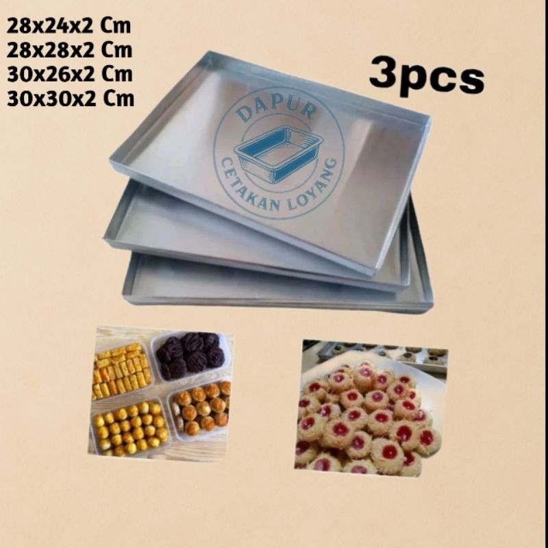 ( PROMO ) 3 Pcs Loyang kue kering oven hock / tangkring / bima / 28x24 - 28x28 - 30x25 / cetakan nampan alas nastar kua