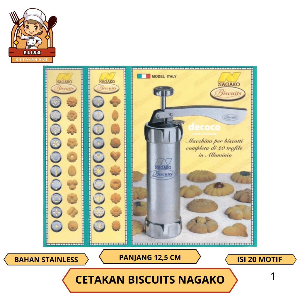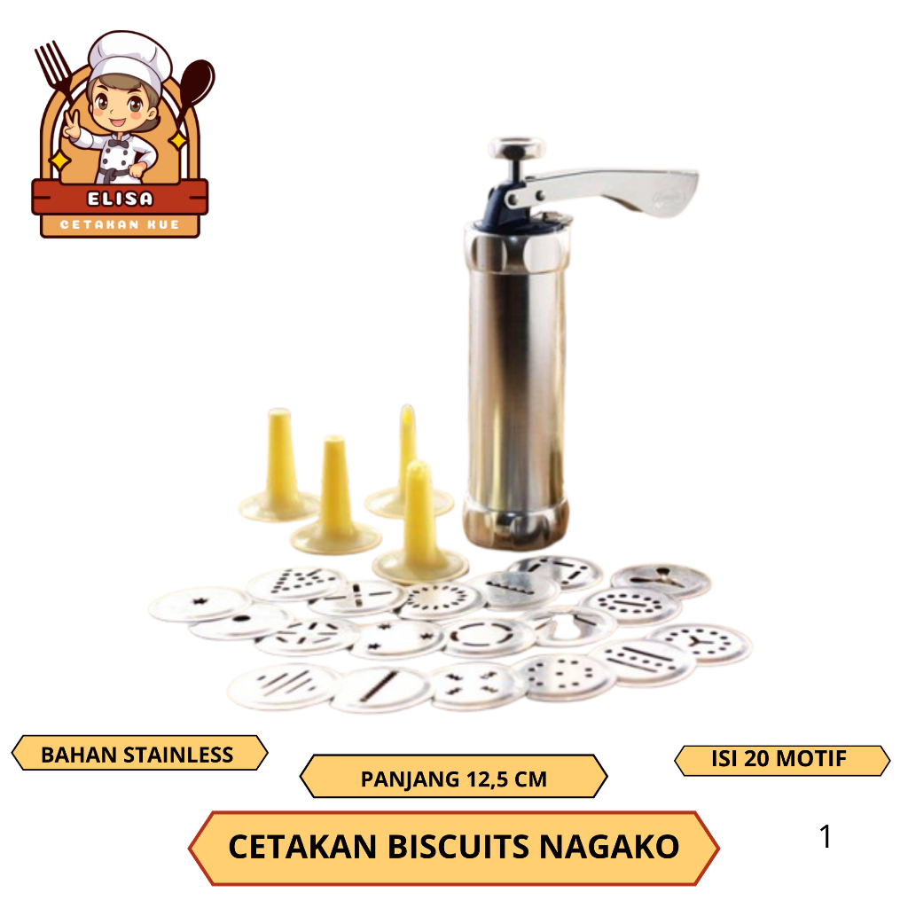 Cetakan Kue Kering akar kelapa Semprit Nagako Marcato Biscuits Maker Bahan Stainless steel 20 motif