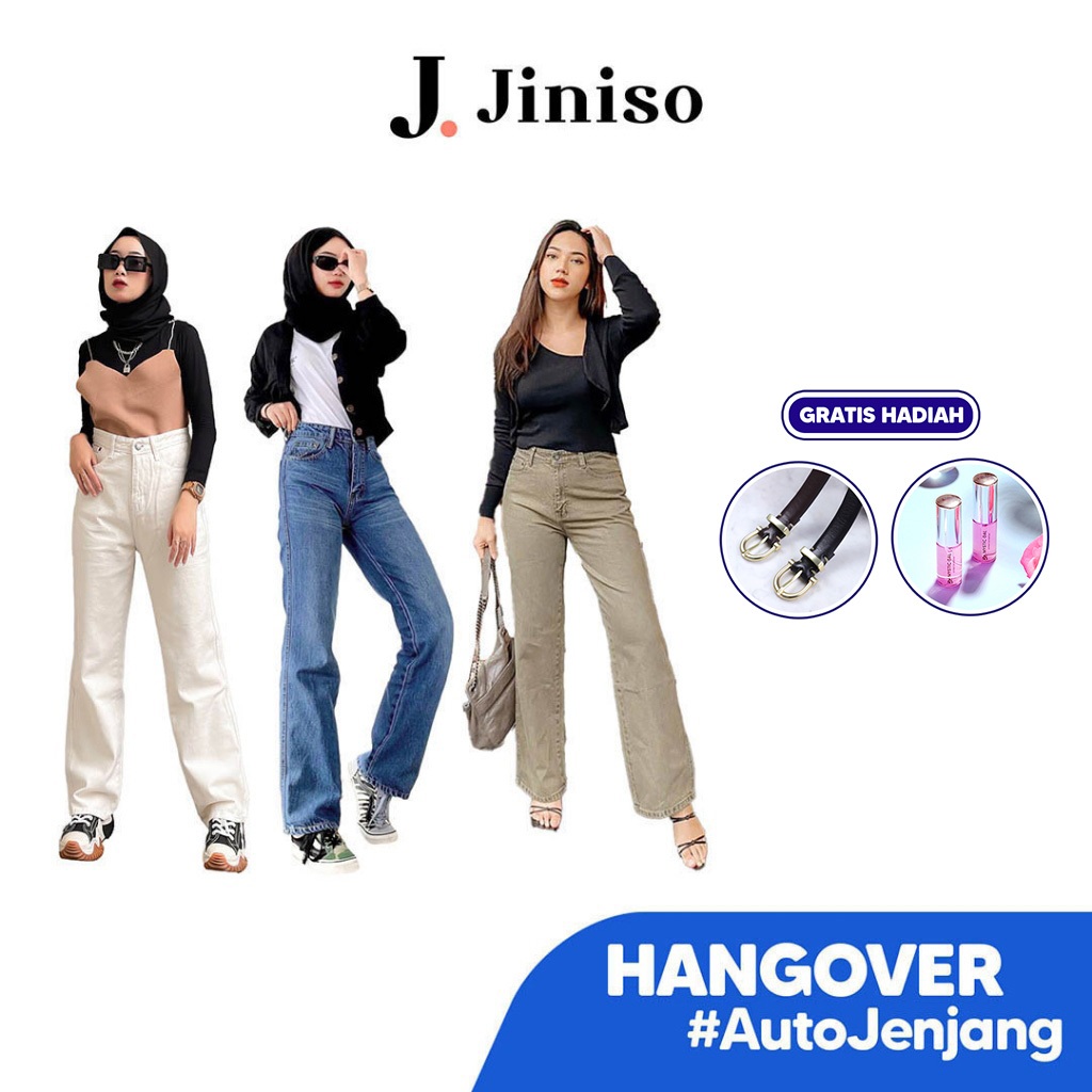 [GRATIS HADIAH] JINISO OFFICIAL STORE - Highwaist Loose Hangover Jeans Vol. 1 - Celana Panjang Dewasa Kekinian