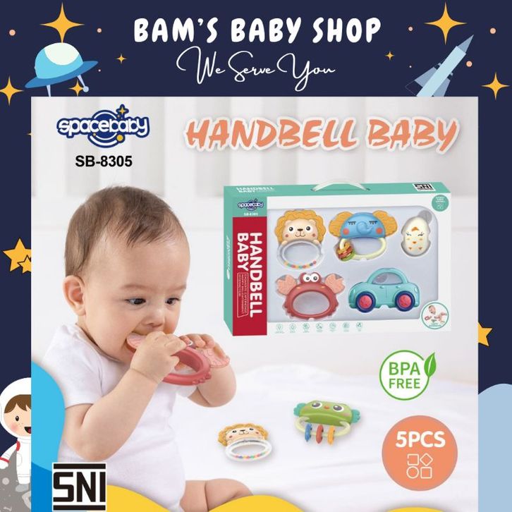 FREE BUBBLEWRAP BAMS GIGITAN BAYI DAN HAND BELL SPACEBABY RATTLE TEETHER SET ISI 5 SB 8305 GIGITAN BAYI SPACEBABY SB830
