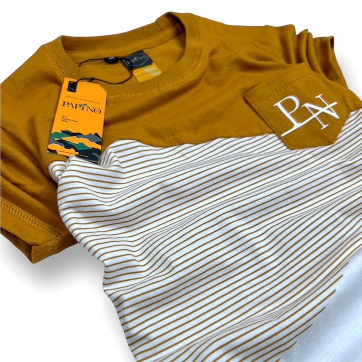 Baju Kaos Anak Laki Laki 1 12 Tahun Lengan Pendek Warna Dark Mustard Motif Garis Garis Salur