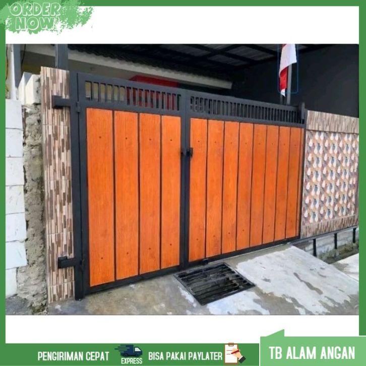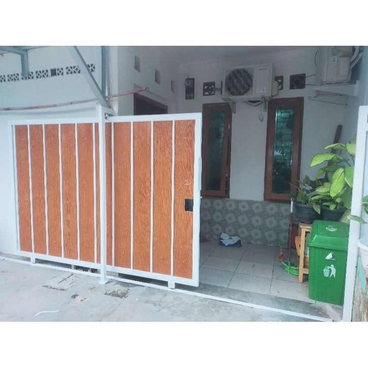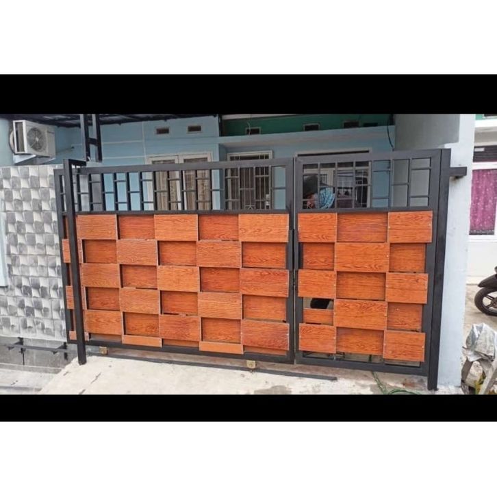 Pintu Gerbang Dorong Geser Lipat Motif GRC Serat Kayu Wodplank