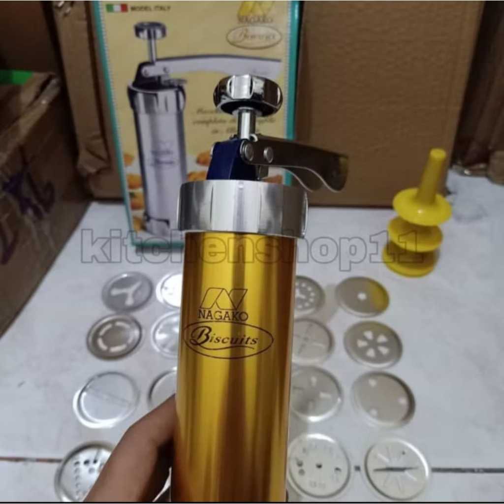 cetakan kue kering akar kelapa semprit gold kuningan 20pcs / cetakan kue semprit akar kelapa nagako /marcato 20pcs cetak