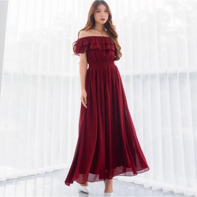 REDY LAGI 0179/ D0356 YURINA / MALAIKA /RUFFLE JULIET DRESS OFF SHOULDER PUTIH BOHEMIAN PANTAI WDING PARTY SABRINA QUAL