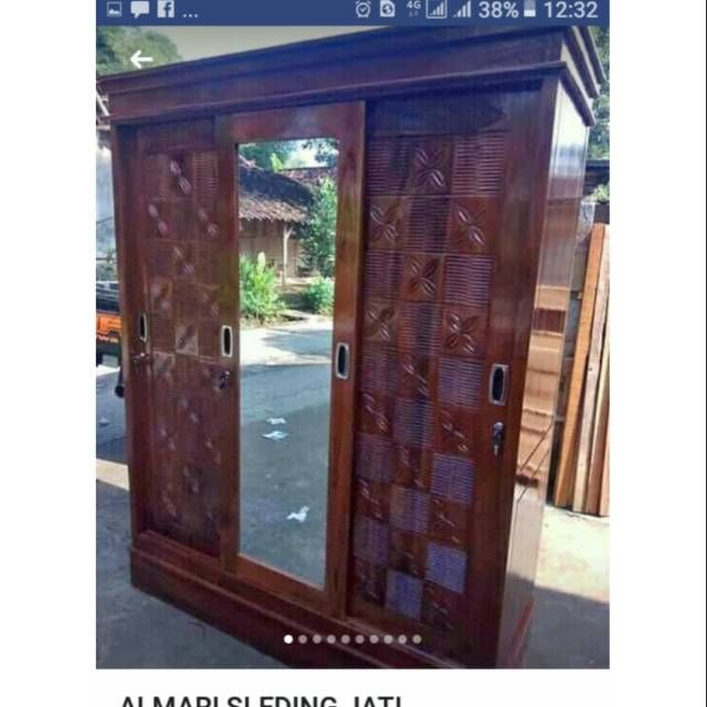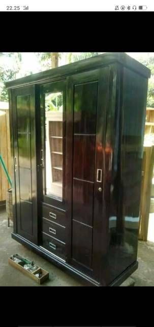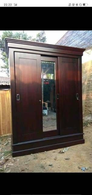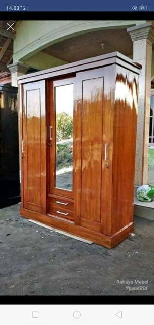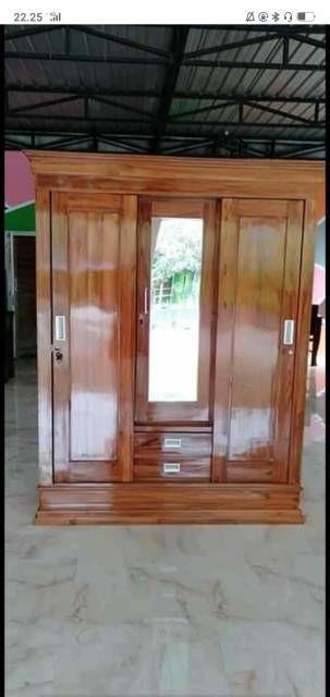 Lemari Pakaian Kayu Jati Pintu 3 Sleding Terbaru Termurah