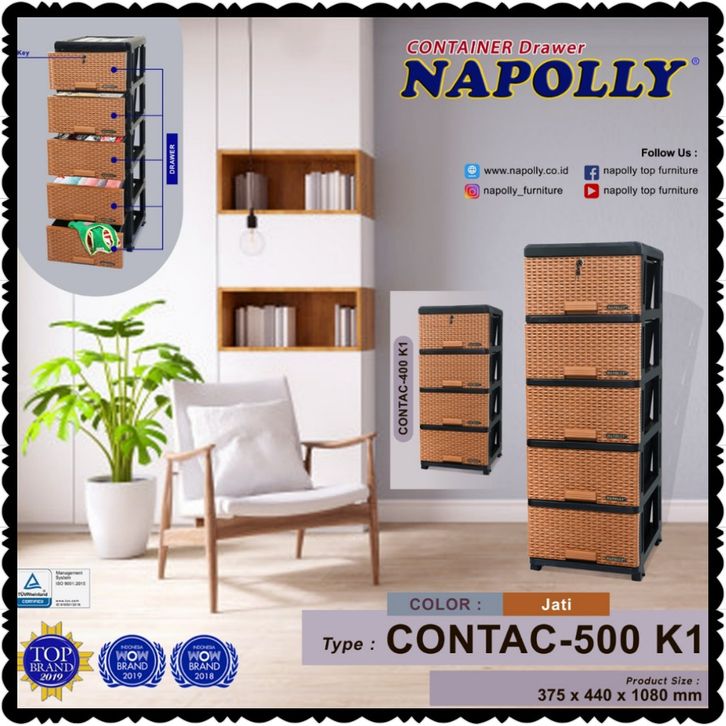 Lemari Susun Plastik Napolly Contac K1 Jati / Drawer 4 Laci Serbaguna