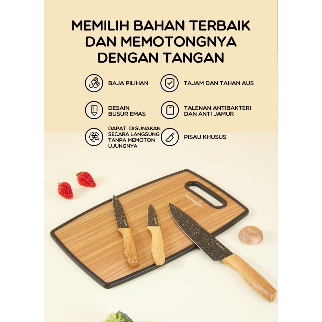 Bonbox Kitchen - Pisau Set 3in1 Talenan Potong Daging Dan Buah - BKE31116