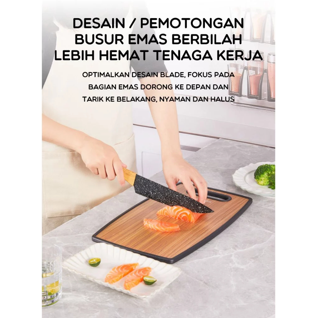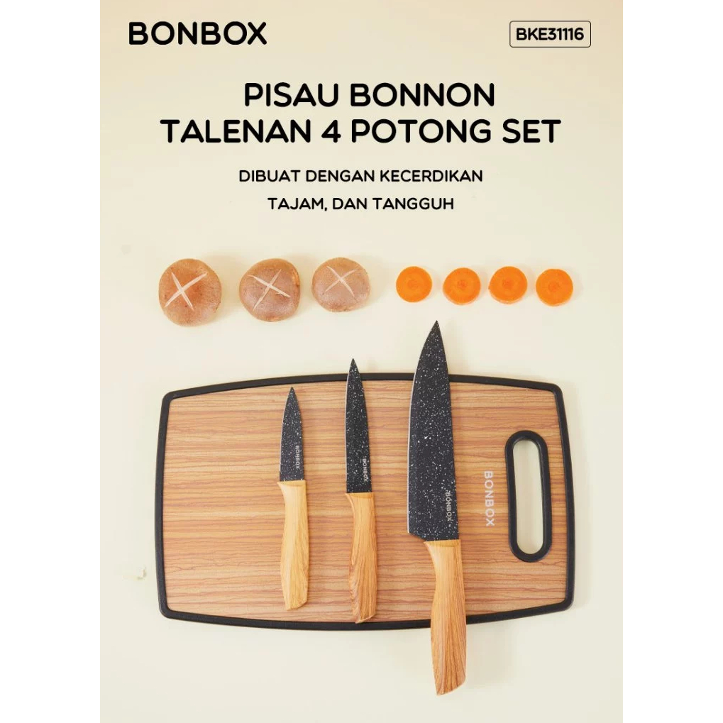 Bonbox Pisau Set 3in1 BKE31116 Talenan Set Pisau Pealer All in1 Alat Dapur Kayu Set Potong Daging Dan Buah