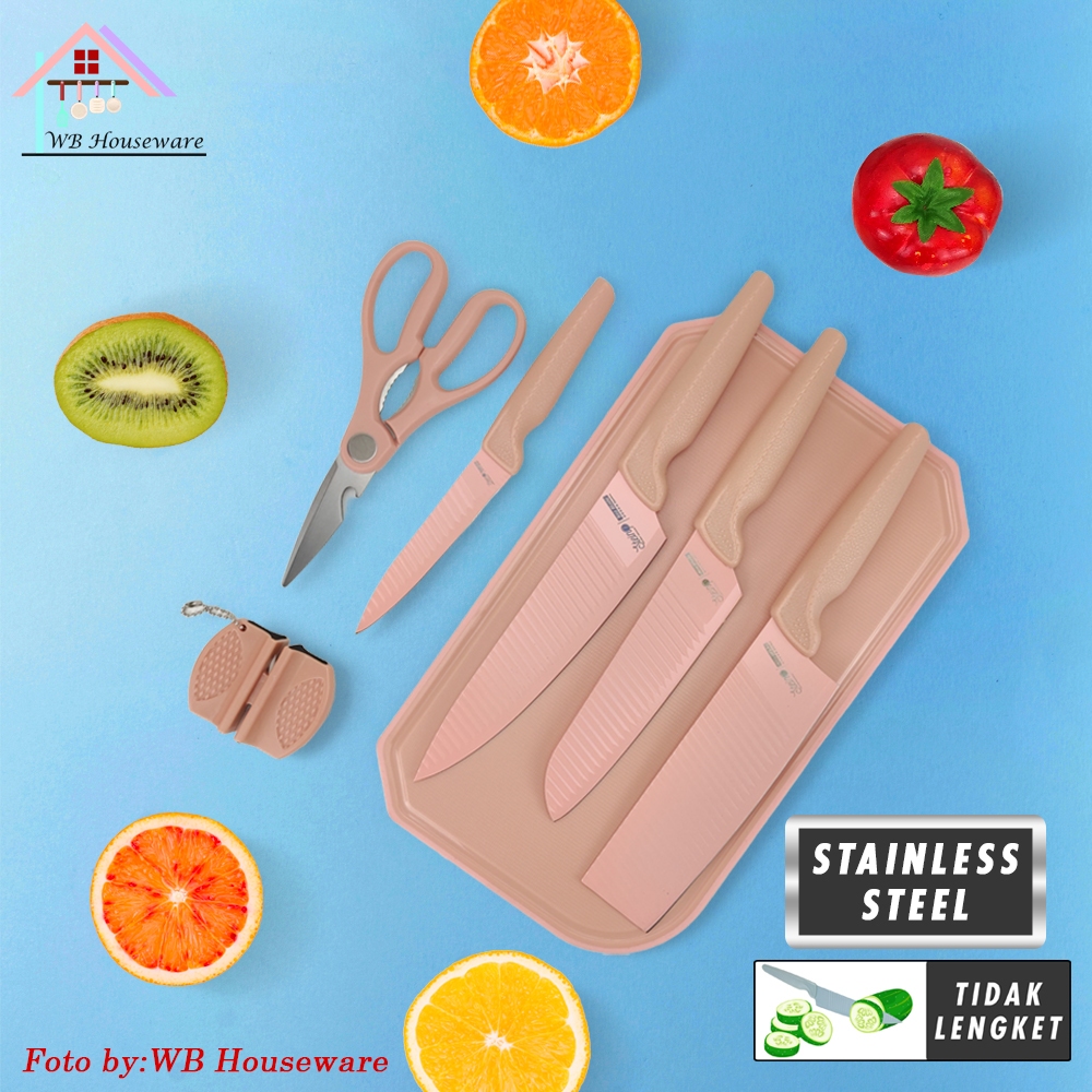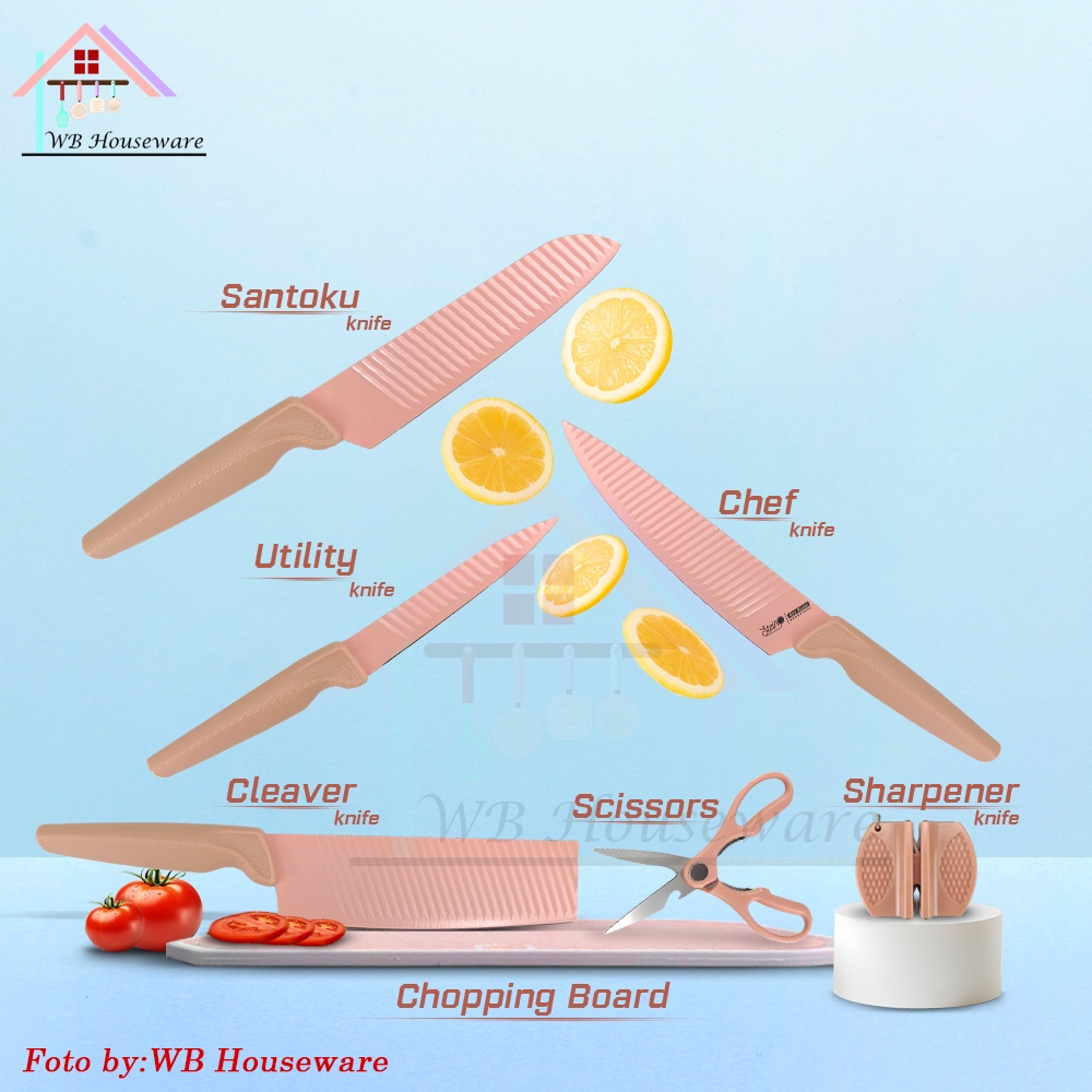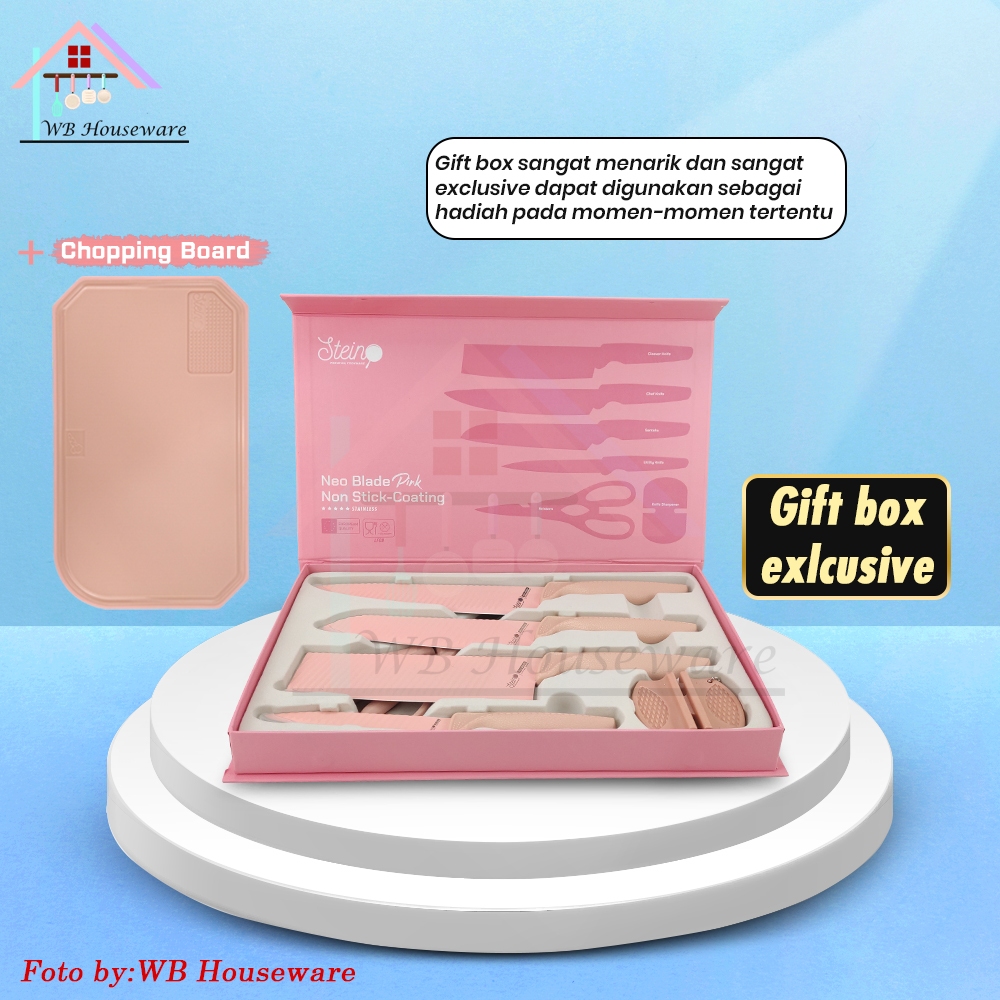 STEIN STEINCOOKWARE knive set neo blade pink / pisau set talenan anti lengket