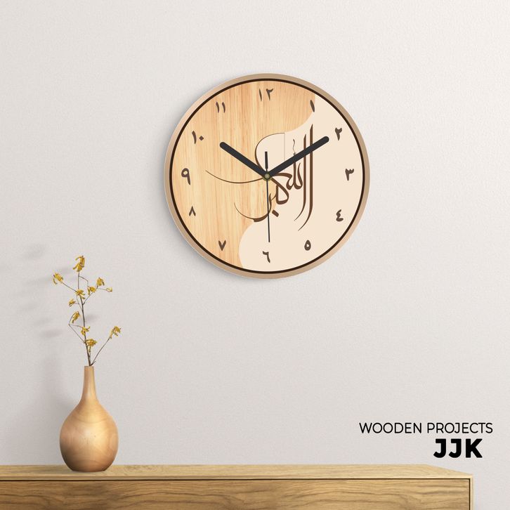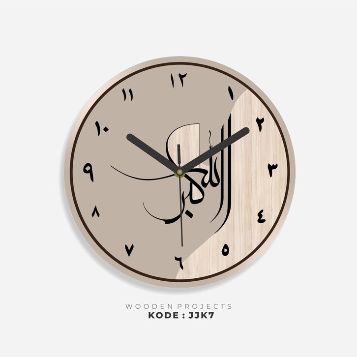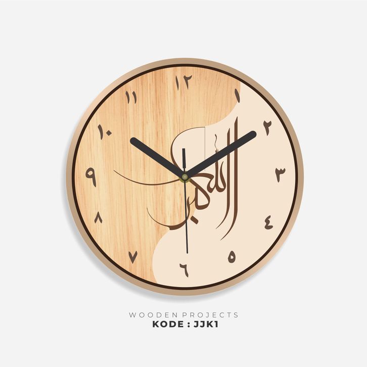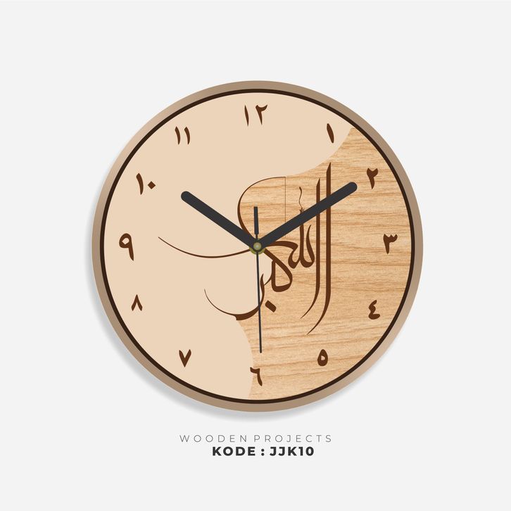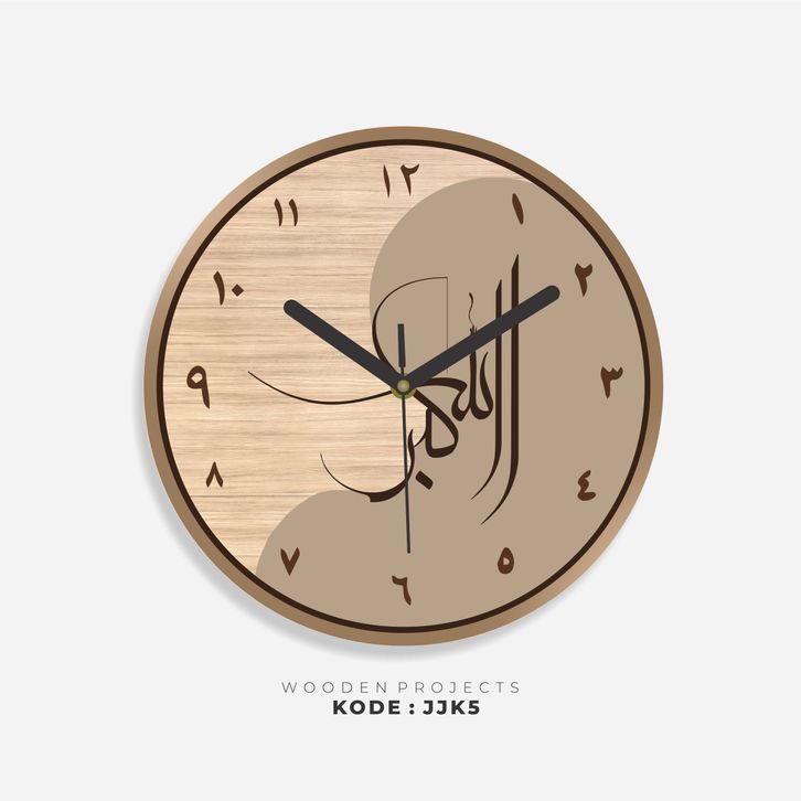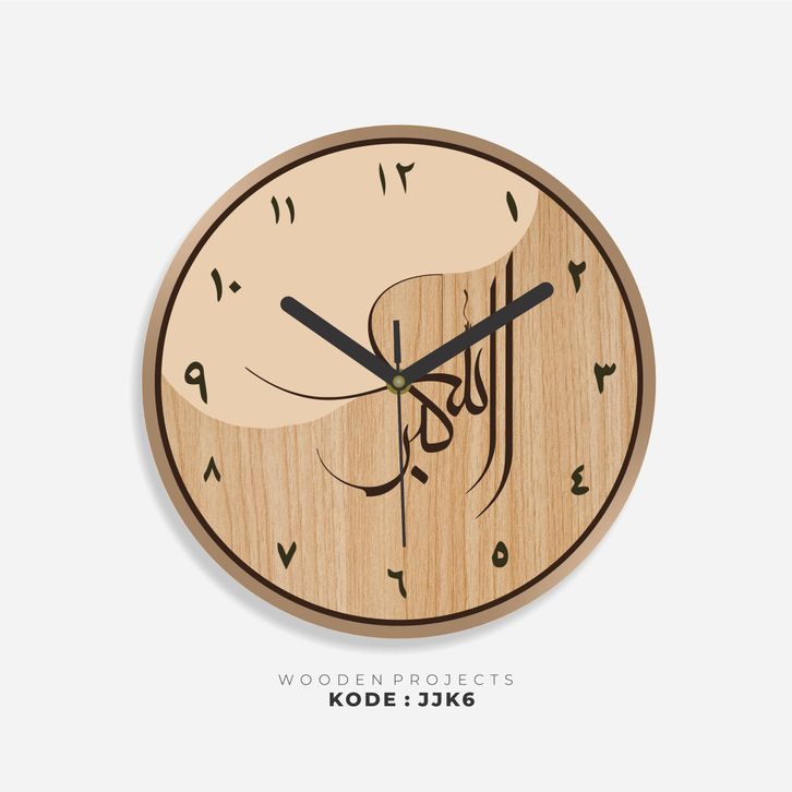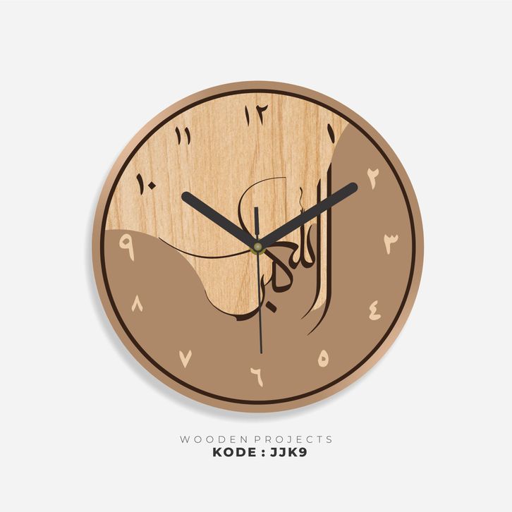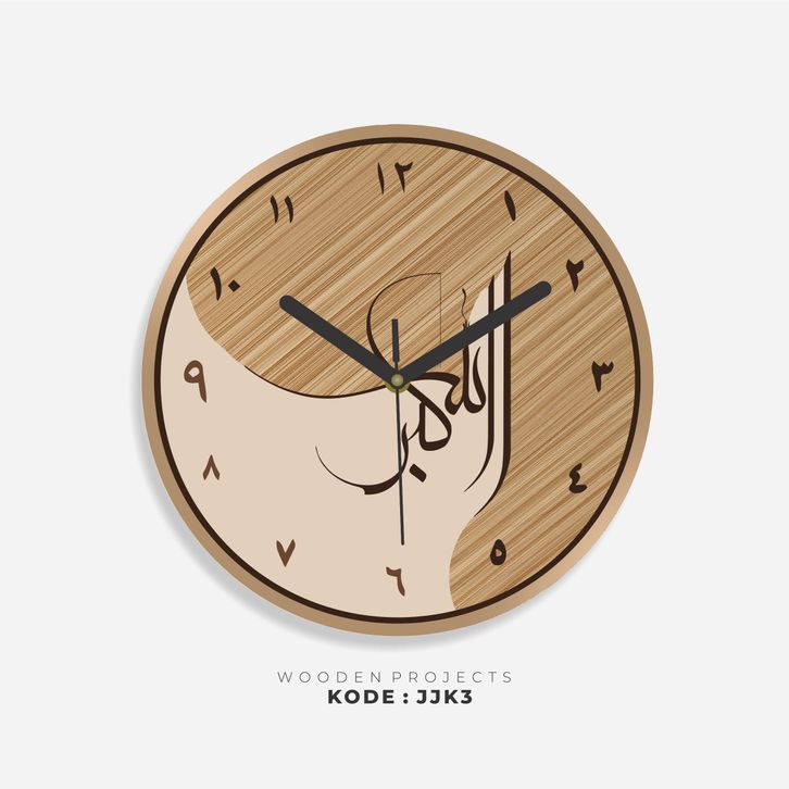 Wooden Projects Jam Dinding Rumah Kaligrafi Motif Kayu Angka Arab Japandi Decor Style - JJK