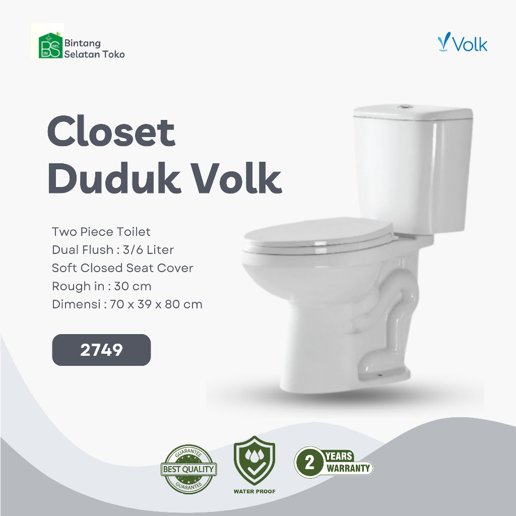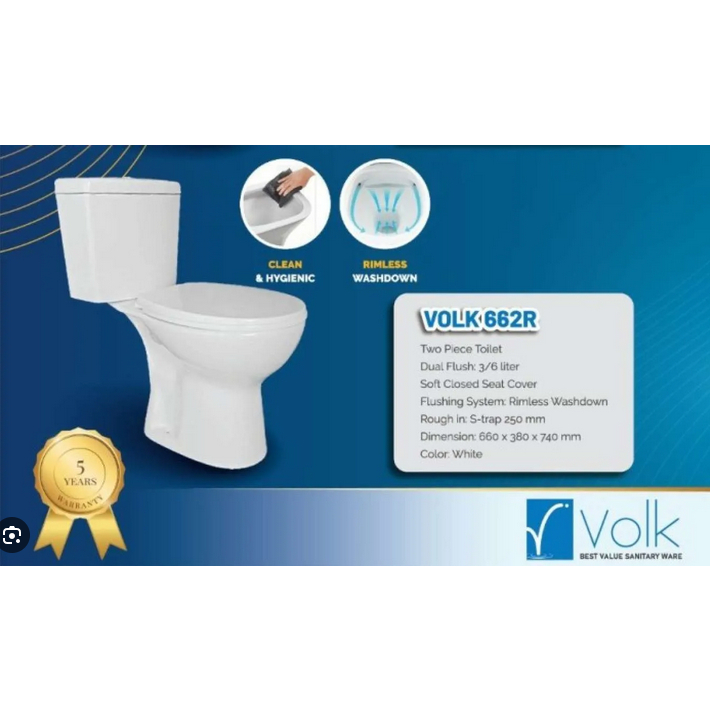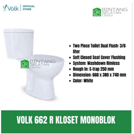 KLOSET DUDUK VOLK/ CLOSET TWO PIECE TOILET VOLK 680 / MONOBLOK EKONOMIS WHITE