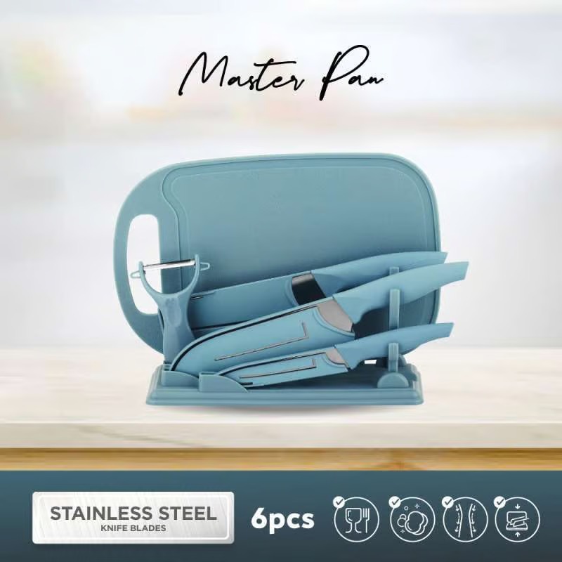 Master Pan Set Pisau dan Talenan dengan Tempat 6 pcs