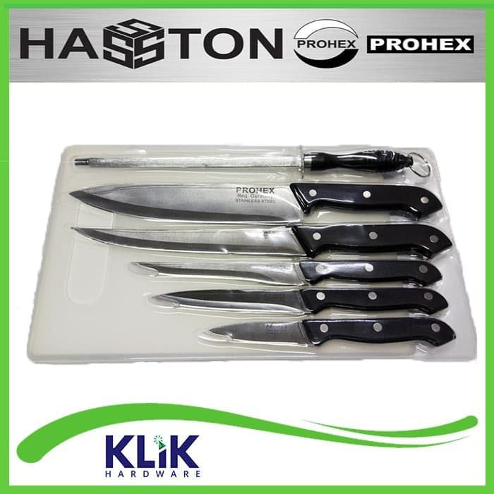 HASSTON Pisau Dapur Set 7 Pcs + Pengasah + Talenan