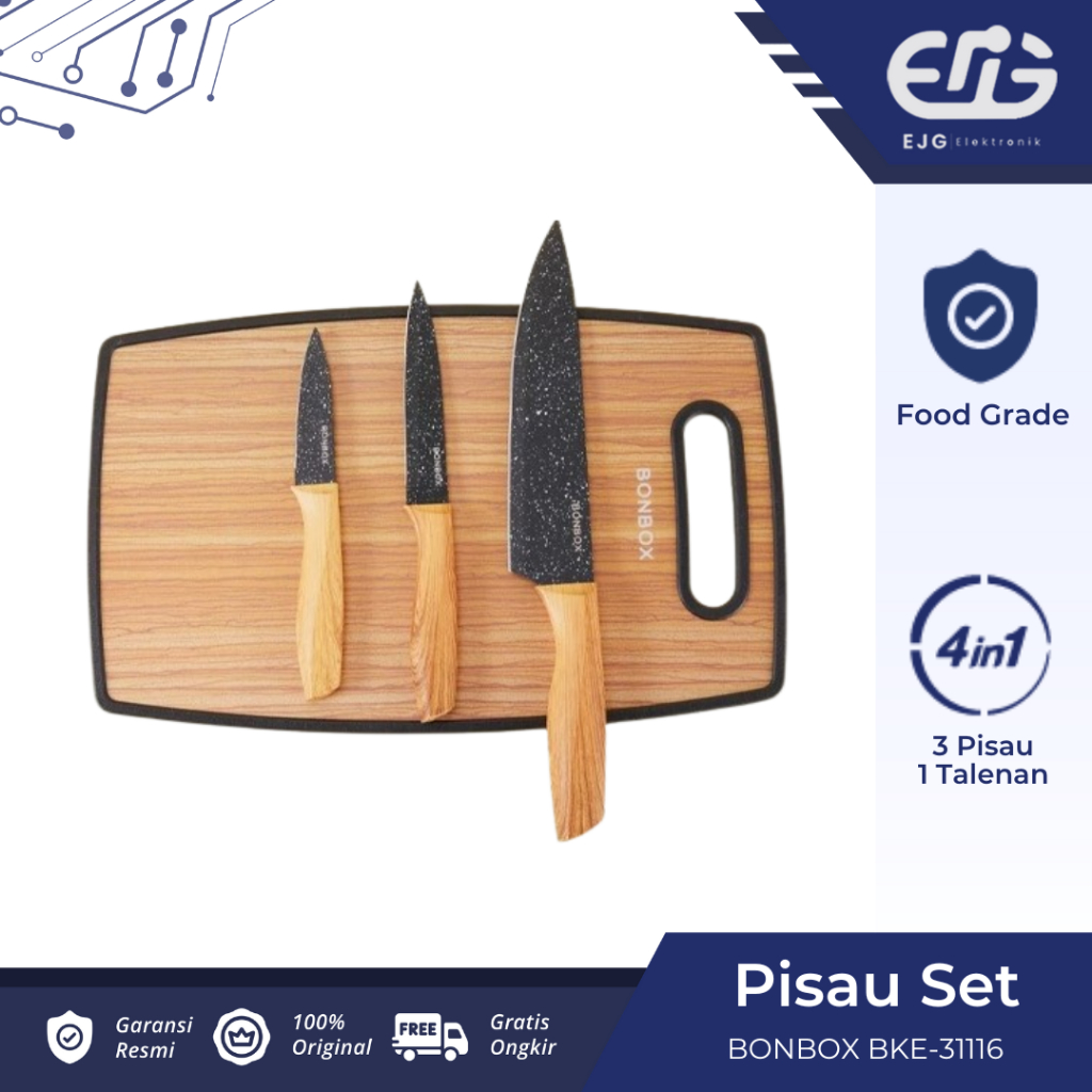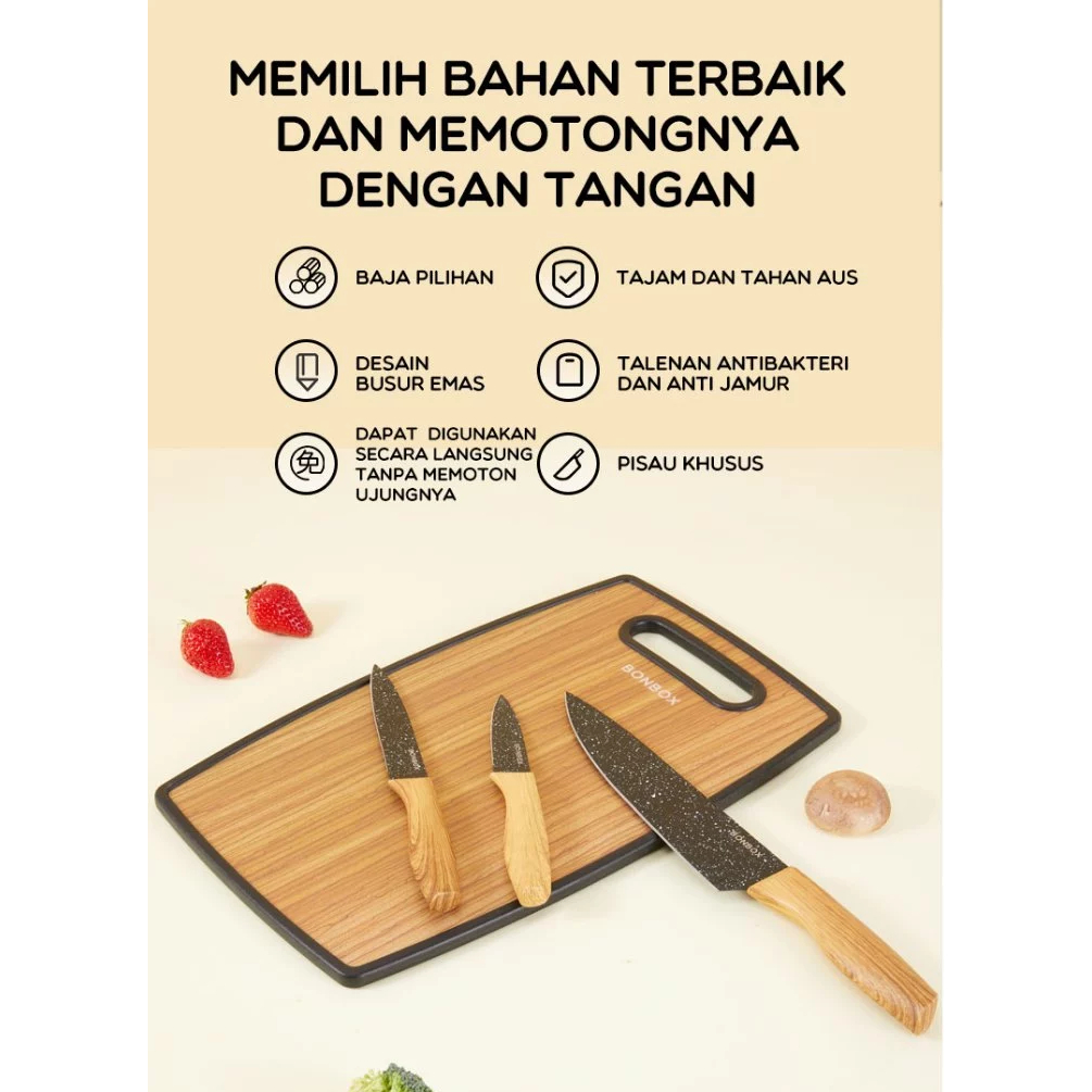 Bonbox Pisau Set 3in1 BKE31116 Talenan Set Pisau Pealer All in1 Alat Dapur Kayu Set Potong Daging Dan Buah