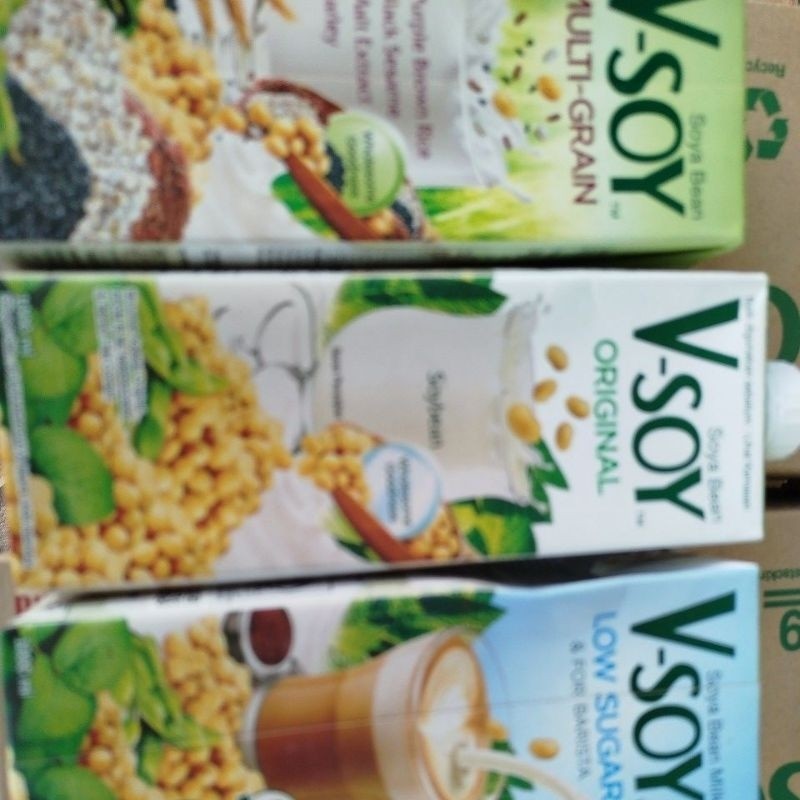 Vsoy 1 liter susu kedelai/v-soy original+vsoy multi grain+vsoy low fat