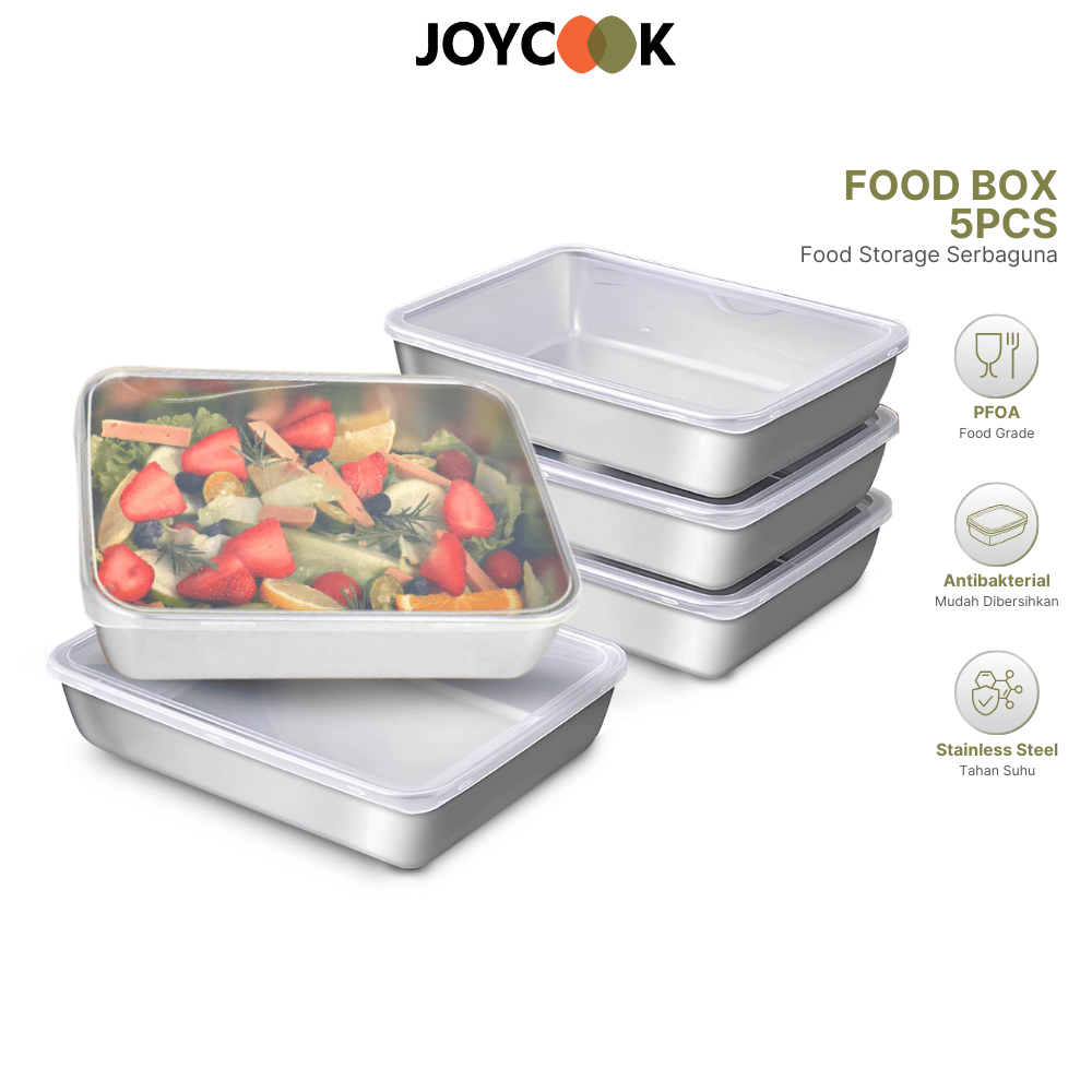 JOYCOOK Food Box Isi 5pcs Wadah Stainless Makanan Bisa untuk Oven dan Microwave Free Tutup