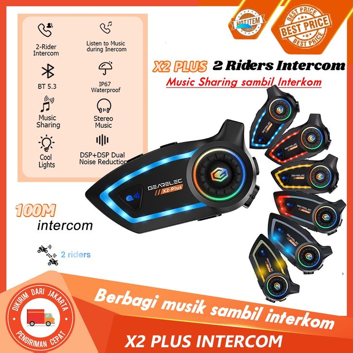 Gearelec X2 Plus Helm Intercom Headset 2 Riders 50m Intercom Support Music Sharing While In Intercom