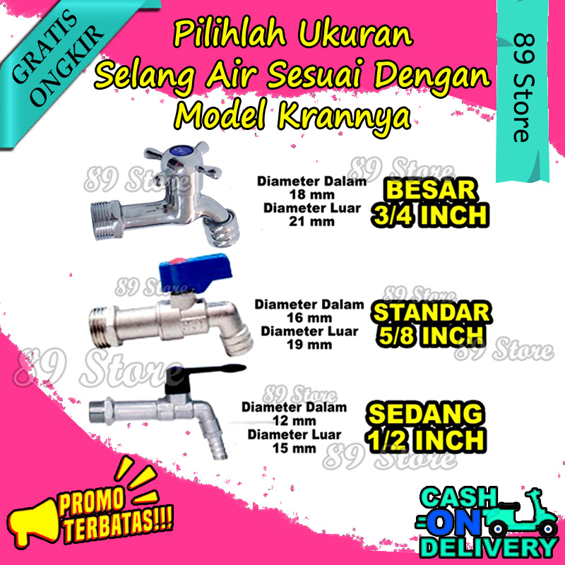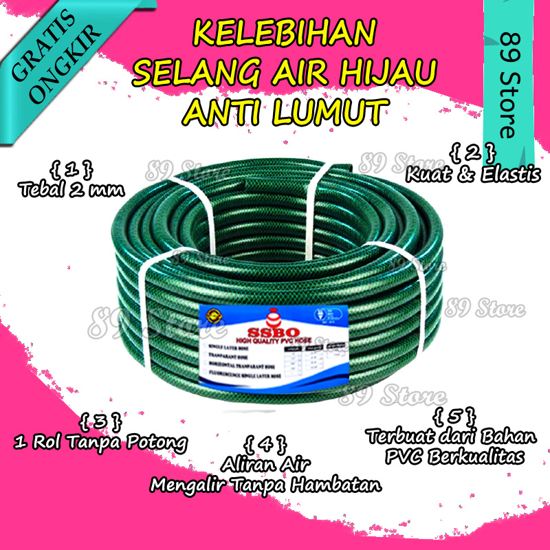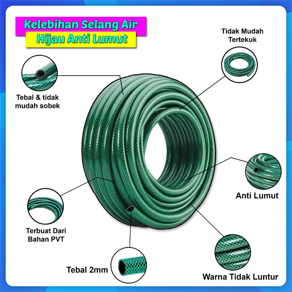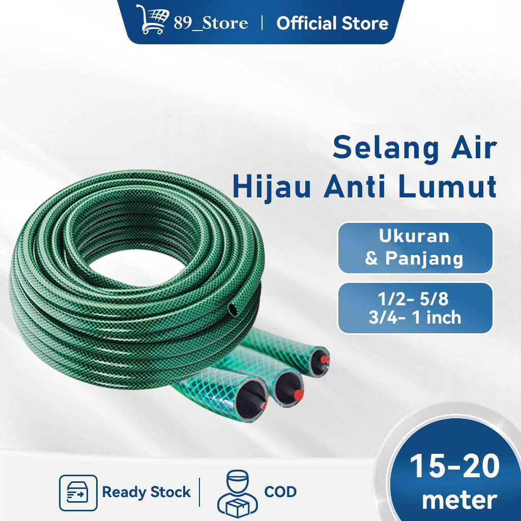 "Selang Air Anti Lumut 15-40M - Fleksibel & Kuat untuk Taman, Perkebunan, Cuci Mobil 1/2 5/8 3/4