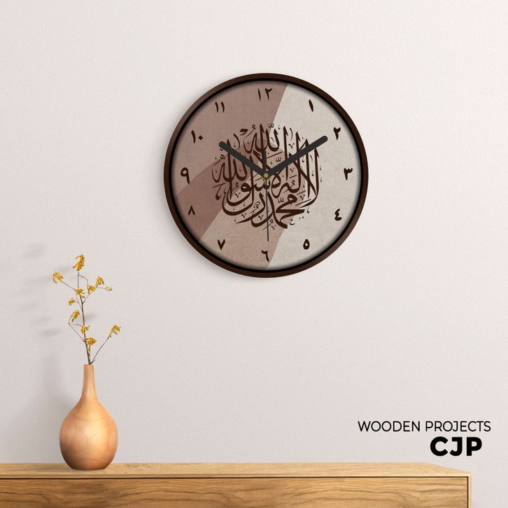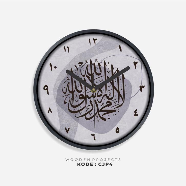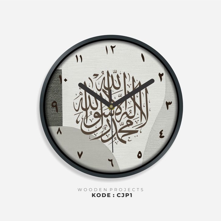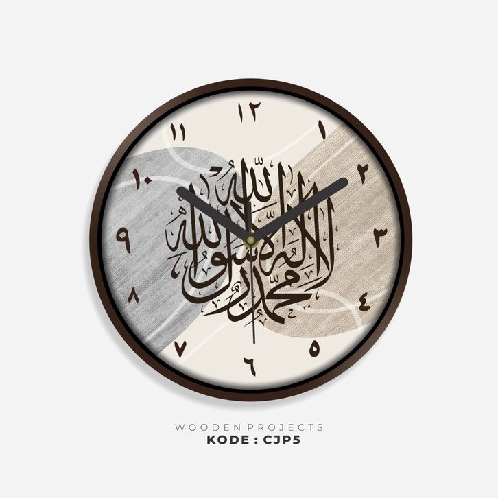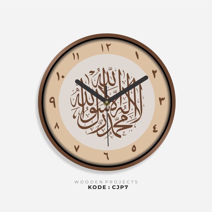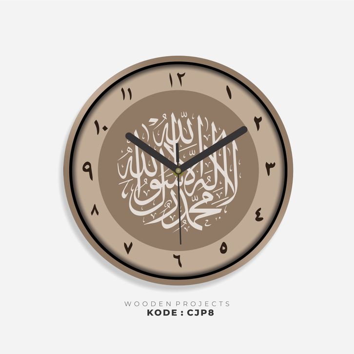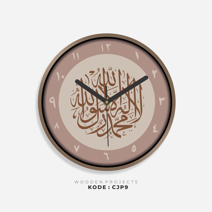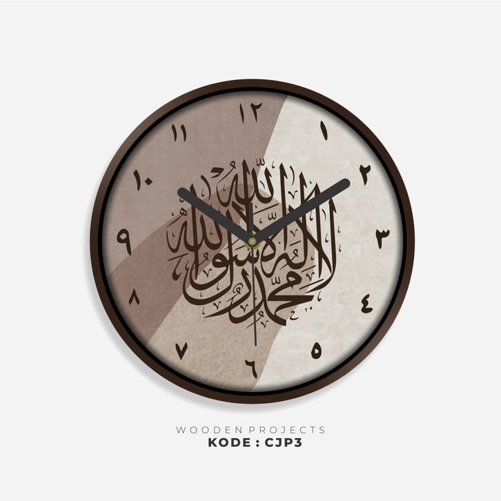 Wooden Projects Jam Dinding Rumah Motif Kaligrafi Angka Arab Japandi Decor Style - CJP