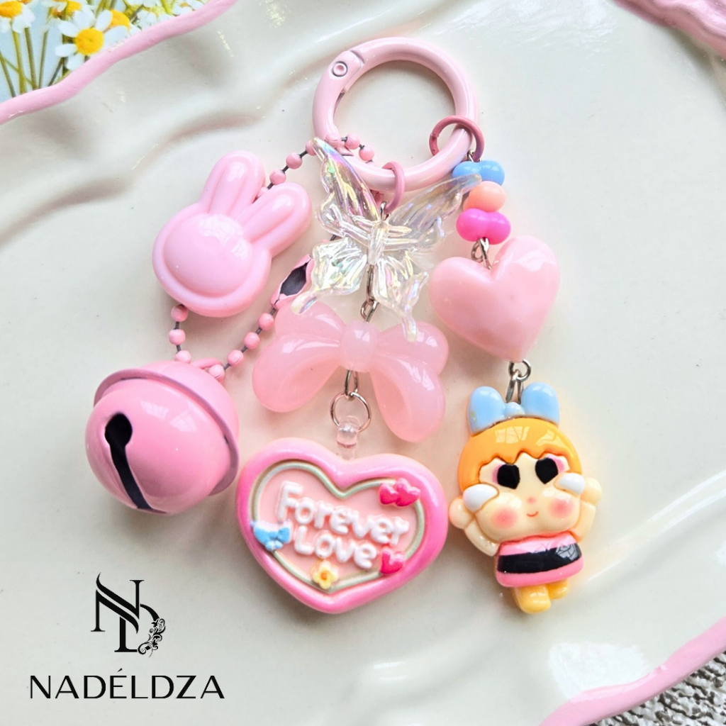Nadeldza Mini Strap Chain Bag Charm Crybaby Powerpuff Girls Series Love Kupu Lonceng Bunyi