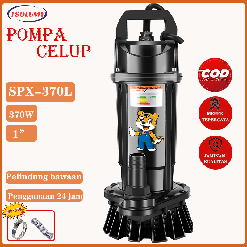 Tsolumy Pompa Celup Air Kotor SPX-370L Submersible Pump 1 inch Pompa Kolam Ikan Pompa Banjir
