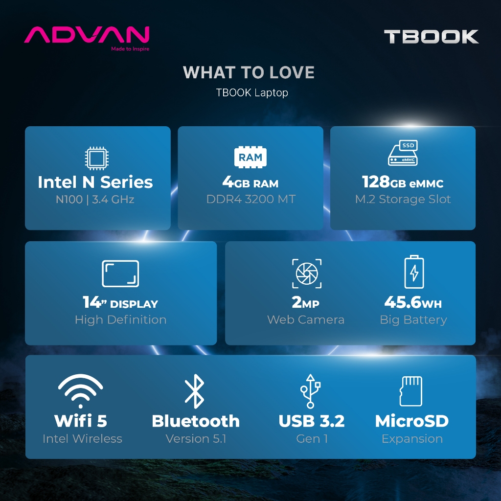 LAPTOP ADVAN TBook X Transformers | Tbook Intel Celeron N100 | 4Gb/128GB Upgradable