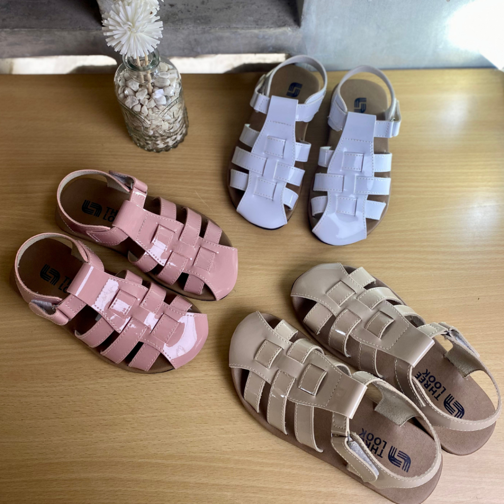 Threelook - Sandal Sepatu Anak Perempuan Terbaru 2025 Sandal Anak Kekinian Yoan Glossy Anti Slip Simple Cantik Mewah