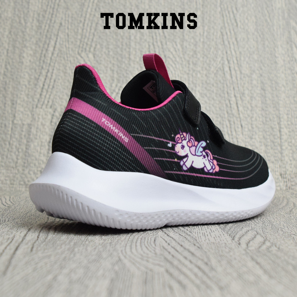Tomkins Stitch - Hitam Merah Muda Sepatu Sekolah Perekat Anak Remaja
