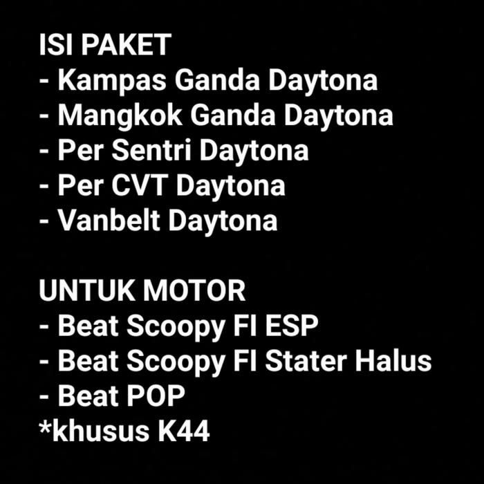 Paket Kirian PAKET KIRIAN BEAT FI STATER HALUS BEAT ESP BEAT POP K44 DAYTONA RACING - 1000 RPM